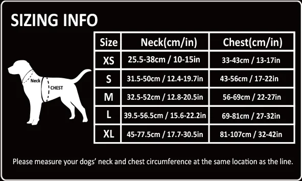 Perfect fit: To ensure the correct size, measure your dog’s chest circumference and choose from the XS to XL size options.