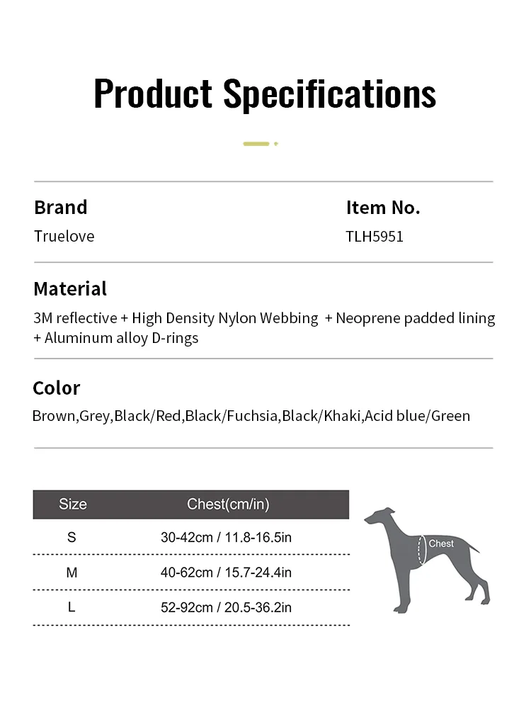 Ensure visibility with 3M reflectors, easy on/off with the snap release buckle. Ergonomic design distributes pulling force, while durable materials withstand tension. The zinc alloy pull buckle offers corrosion resistance and an upscale look. Remember to measure your dog’s chest circumference for the perfect fit. TLH5951 Harness: Visibility, convenience, comfort, durability, and a precise fit for your furry companion.